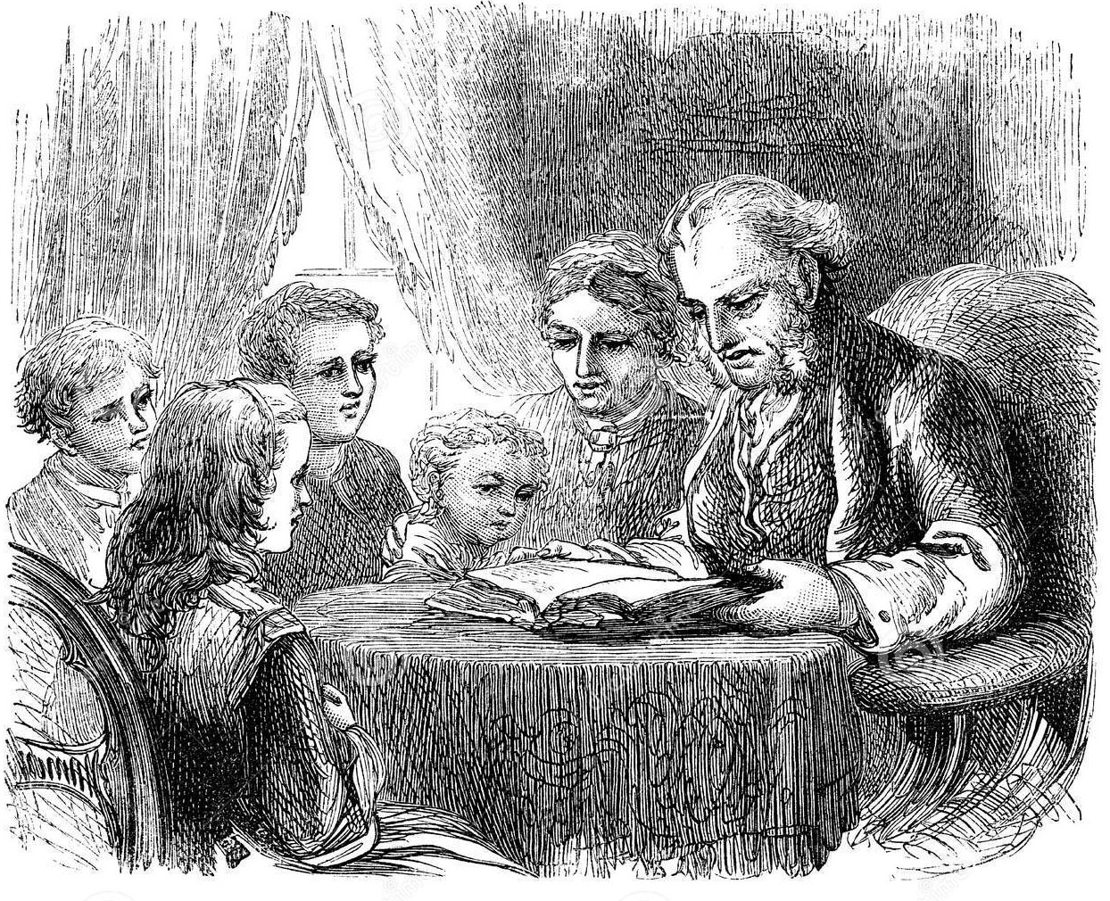 Illustration av ett bibelstudium i hemmet