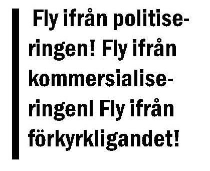 När människor som sjunkit ned på denna nivå har fått politisk makt och mycket pengar, då blir konsekvenserna förödande. Om någon genom mångårig preparering och indoktrinering om sin duglighet och skicklighet blivit medveten om sina kvaliteter och sin kapacitet är det självklart att hon ställer krav på samhället och på politikerna. Och så går man från församlingen ut med religiösa kristna krav. Att tron har gått förlorad och ersätts med moralism, det upptäcker man inte. Förkyrkligandet är fruktansvärt.