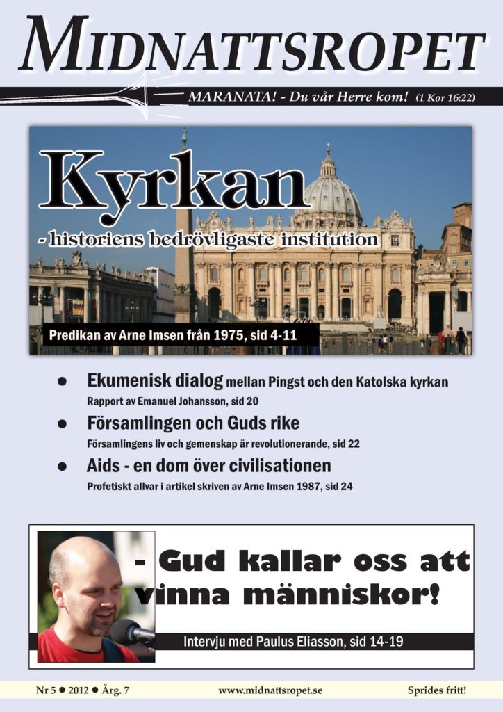 I det här numret av MR publicerar vi en predikan av Arne Imsen från 1975, som är en uppgörelse med en institutionaliserad kristenhet. Jesus sa till sina lärjungar att de skulle vara beredda på att möta motstånd, dels från den sekulära världen, men främst från religiöst håll.