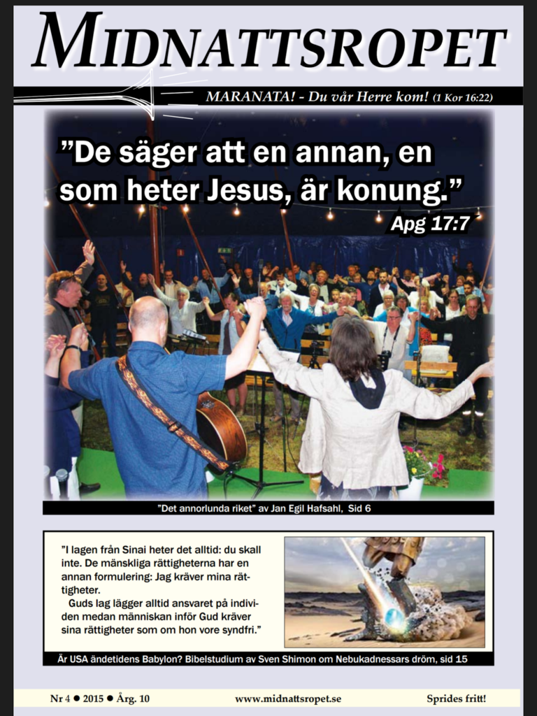 Vi ska läsa ett av de äldsta vittnesbörden som ges om Guds folk. Vi går till Apostlagärningarna kapitel 17, och läser från vers 6, den sista delen: ”Dessa män, som hava uppviglat hela världen, hava nu också kommit hit, och Jason har tagit emot dem i sitt hus.” Och så kommer definitionen på dessa trons uppviglare: ”De göra alla tvärtemot kejsarens påbud och säga att en annan, en som heter Jesus, är konung.”