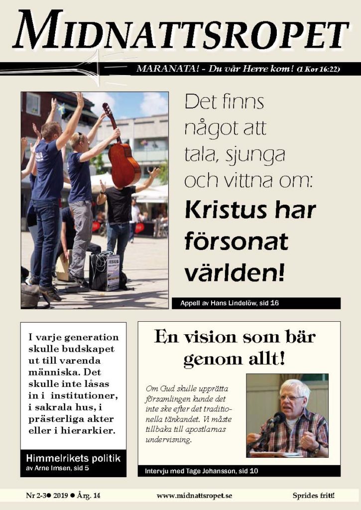 **När Midnattsropet ville göra en intervju med Tage Johansson, med tanken att han skulle berätta en del från sitt rika liv, visade det sig vara svårt att styra. Tage ville gärna bli intervjuad, men absolut inte berätta så mycket om sig själv. Han ville förmedla den vision som burit honom i alla år, redan innan han fick den manifesterad i Maranataväckelsen. Här får våra läsare ta del av den vision som ledde Tage in i en livsstil som präglat större delen av hans liv.