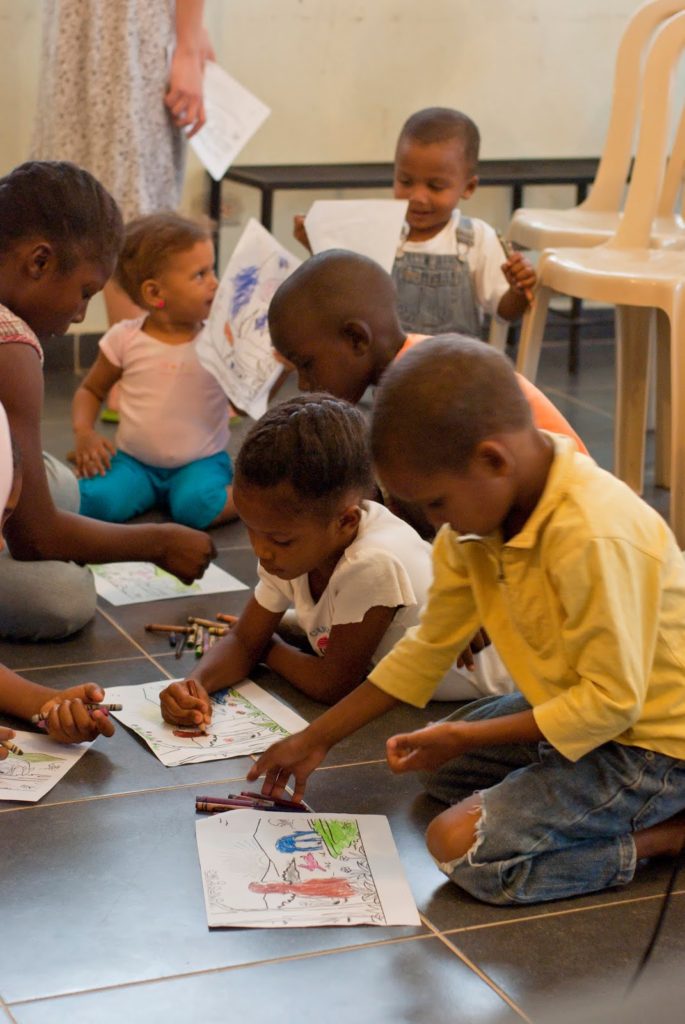 I området Villa Carolina i Palavé har vi en plats där ett sextiotal barn samlas varje fredag för att sjunga, be, måla och lyssna till olika bibelberättelser.